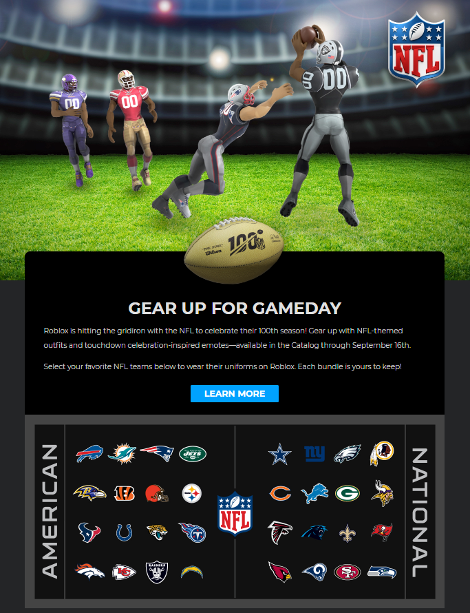 Roblox Teams Up With The Nfl To Celebrate 100th Anniversary